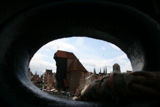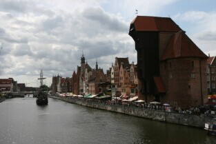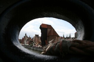 Gdańsk, rzeka Motława. Nz. Żuraw i Długie Pobrzeże