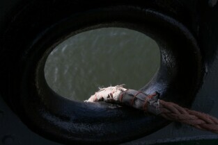 Gdańsk, rzeka Motława. Nz. jacht Delfin