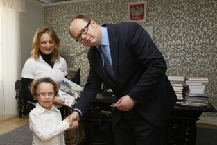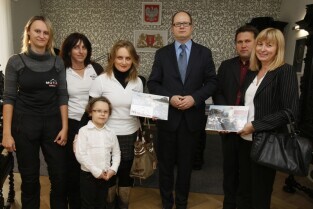Prezydent Gdańska Paweł Adamowicz spotkał się z działaczkami stowarzyszenia motocyklistek "Motopomorzanki". Gdańsk, Urząd Miejski