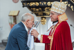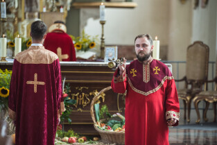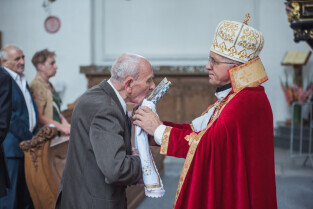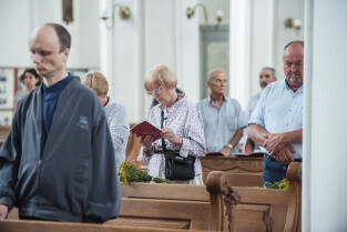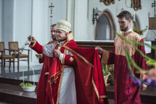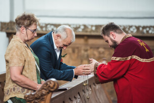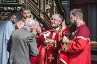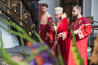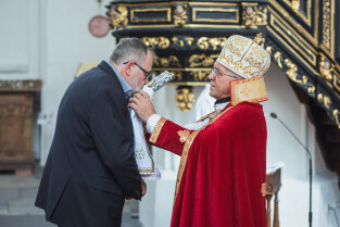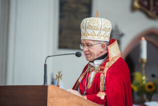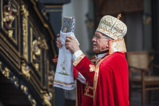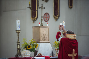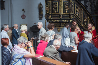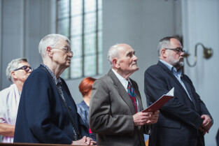 Gdańsk, ul. Żabi Kruk. Msza św poświęcona pamięci śp. prezydenta Pawła Adamowicza. Nz. ks. prof. Józef Naumowicz