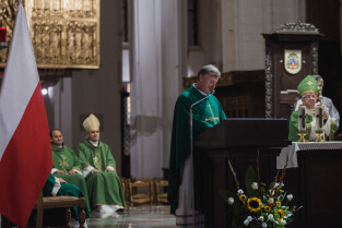 Gdańsk, Bazylika Mariacka. Msza św. w drugą rocznicę śmierci ks. Bogdanowicza. Nz. Ksiądz Arcybiskup Sławoj Leszek Głódź, Metropolita Gdański