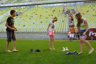 To już się dzieje! Pierwsi zwiedzający już wykorzystali swoją szansę na wejście na murawę PGE ARENY! Pierwsza grupa składała się z indywidualnych gości z różnych stron Polski i zagranicy, druga była wycieczką uczniów z Małopolski . Para z Bremen w Niemczech była zachwycona możliwością swobodnego korzystania z boiska. Jak powiedziała nam pani Liza, u siebie na stadionie dotąd nie mieli takiej okazji. W Gdańsku za to wykorzystali ją w pełni, spacerując boso po murawie i strzelając gole do stadionowej bramki. Przypominamy, że tylko dzisiaj, wszystkie wycieczki po PGE ARENIE mogą wchodzić swobodnie na murawę gdańskiego stadionu! Grupy zwiedzających wchodzą na obiekt z przewodnikami co pół godziny. Ostatnia grupa może zapisać się na zwiedzanie o godzinie 18:00