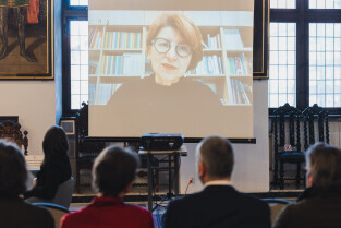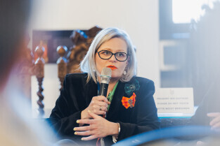 Gdańsk, ul. Długa. Muzea wobec wielokulturowości – o nowych wyzwaniach współczesnego świata – debata. Muzea Jutra 2. Uczestnicy debaty - dr hab. Miłosława Borzyszkowska-Szewczyk, prof. UG – literaturoznawczyni, germanistka, działaczka społeczna
