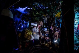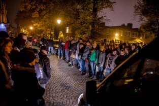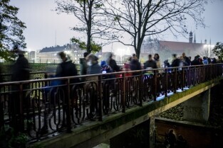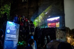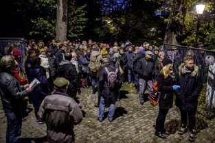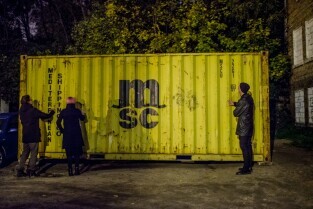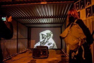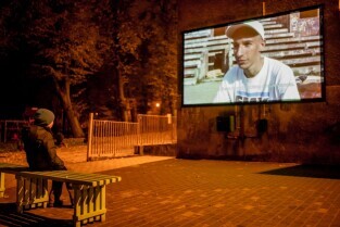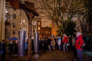 Artystyczne interwencje w przestrzeń publiczną dzielnic Gdańska - Biskupia Górka. Nz po prawej Stach Szabłowski – kurator ósmej edycji.