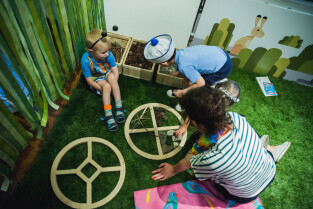 Gdańsk. Prezentacja przewodnika i interaktywnej wystawy dla dzieci i rodziców "Odkryj Gdańsk z Niemapą". Nz. Monika Szewczyk-Wittek, Małgorzata Żmijska - z Mamy Projekt i Waldemar Elwart, kurator Oddziału Etnografii Muzeum Narodowego w Gdańsku