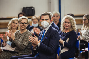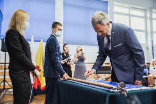 Gdańsk, X Liceum Ogólnokształcące Dwujęzyczne im. Lecha Bądkowskiego w Gdańsku ul. Kościuszki. Nadanie Szkole imienia Lecha Bądkowskiego. Nz. Grzegorz Grzelak-wice przewodniczący Sejmiku woj. Pomorskiego.