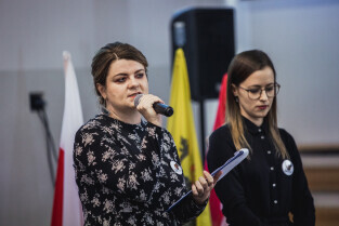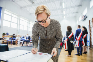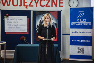 Gdańsk, X Liceum Ogólnokształcące Dwujęzyczne im. Lecha Bądkowskiego w Gdańsku ul. Kościuszki. Nadanie Szkole imienia Lecha Bądkowskiego. Nz. Radna Emilia Lodzińska