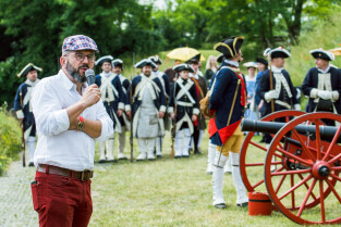 Gdańsk, Hevelianum. Nadanie imienia replice XVII-wiecznej armaty. Nz. Dyrektor Hevelianum Paweł Golak