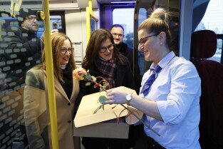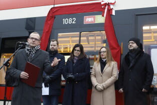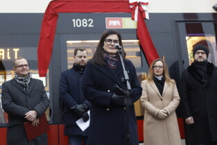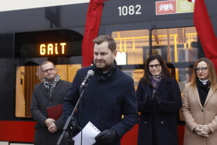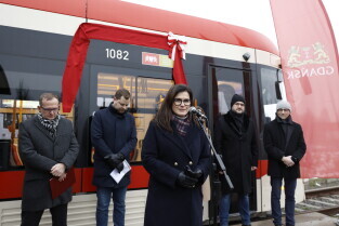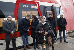Gdańsk. Nadanie patronatu gdańskiemu tramwajowi imienia Zdzisława Kieturakisa. Nz. Przewodnicząca Rady Miasta Agnieszka Owczarczak.