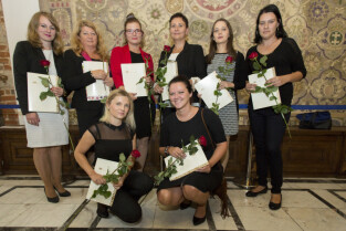 Uroczystość nadania stopnia nauczycielskiego. Akty mianowania wręczyli Prezydent Gdańska Paweł Adamowicz i Przewodniczący Rady Miasta Gdańska Bogdan Oleszek. Gdańsk, Sala Wety Ratusza Głównego Miasta