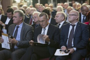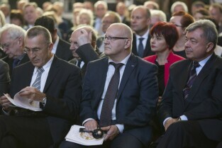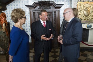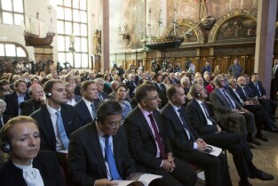 Gdańsk, Dwór Artusa. VII edycja Nagrody Lecha Wałęsy, której laureatem został ukraiński ruch społeczny Euromajdan. Nz. po środku Z-ca Prezydenta Gdańska Wiesław Bielawski