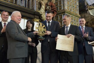 Gdańsk, Dwór Artusa. VII edycja Nagrody Lecha Wałęsy, której laureatem został ukraiński ruch społeczny Euromajdan. Nz. mer Kijowa Witalij Kłyczko