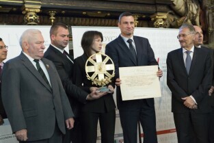 Gdańsk, Dwór Artusa. VII edycja Nagrody Lecha Wałęsy, której laureatem został ukraiński ruch społeczny Euromajdan