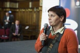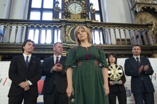 Gdańsk, Dwór Artusa. VII edycja Nagrody Lecha Wałęsy, której laureatem został ukraiński ruch społeczny Euromajdan. Nz. Dyrektor Kancelarii Prezydenta Gdańska Helena Chmielowiec