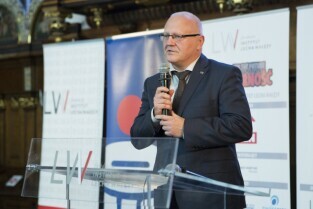 Gdańsk, Dwór Artusa. VII edycja Nagrody Lecha Wałęsy, której laureatem został ukraiński ruch społeczny Euromajdan. Nz. Z-ca Prezydenta Gdańska Wiesław Bielawski