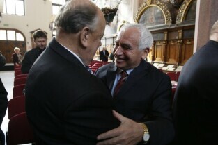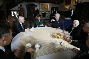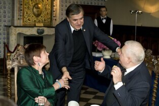 Uroczystość przyznania Nagrody Lecha Wałęsy, którą otrzymała Janina Ochojska - działaczka humanitarna, założycielka i szefowa Polskiej Akcji Humanitarnej. Nz. od lewej: Stanisław Szuszkiewicz (pierwszy pierwszy Rady Najwyższej Białorusi) i Żeliu Żelew (b. Prezydent Bułgarii)