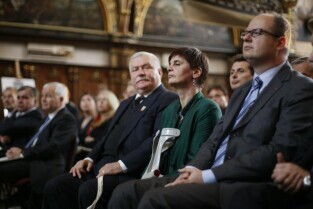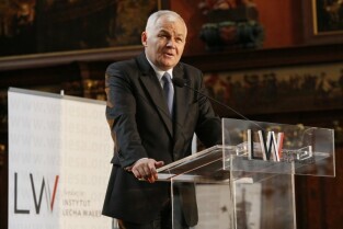 Uroczystość przyznania Nagrody Lecha Wałęsy, którą otrzymała Janina Ochojska - działaczka humanitarna, założycielka i szefowa Polskiej Akcji Humanitarnej. Nz. Jan Krzysztof Bielecki