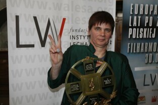 Uroczystość przyznania Nagrody Lecha Wałęsy, którą otrzymała Janina Ochojska - działaczka humanitarna, założycielka i szefowa Polskiej Akcji Humanitarnej. Nz. Janina Ochojska