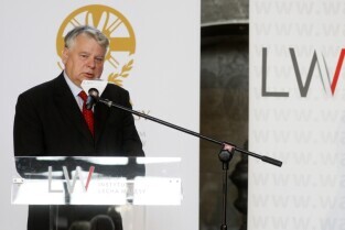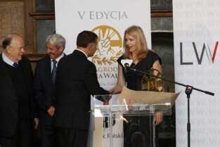 Gdańsk, Dwór Artusa. Wręczenie Nagrody Lecha Wałęsy dla białoruskiego opozycjonisty Alesia Bialackiego, obecnie odbywającego wyrok 4,5 roku więzienia w kolonii karnej. Nagrodę odebrała żona Natalia Pinczuk.