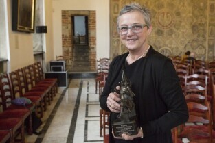 Gdańsk, Ratusz Głównego Miasta. Nagroda Naukowa Miasta Gdańska im. Jana Heweliusza za 2015 r. Nz. laureatka w kategorii nauk humanistycznych i społecznych prof. Danuta Popinigis (Akademia Muzyczna w Gdańsku)