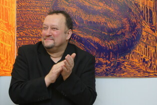 Gdańsk. Wernisaż i wręczenie Nagrody Prezydenta Miasta Gdańska w Dziedzinie Kultury Dariuszowi Syrkowskiemu. Nz. Sławomir Witkowski-Akademii Sztuk Pięknych w Gdańsku.