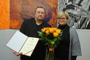 Gdańsk. Wernisaż i wręczenie Nagrody Prezydenta Miasta Gdańska w Dziedzinie Kultury Dariuszowi Syrkowskiemu.