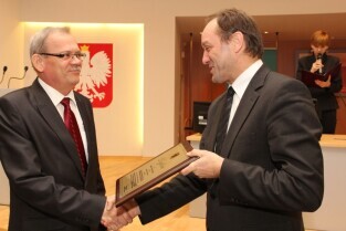 Gdańsk, Urząd Marszałkowski Województwa Pomorskiego. Wręczenie nagrody za Najlepszą Przestrzeń Publiczną Województwa Pomorskiego 2012 za realizację przedsięwzięcia Budowa zieleńca wypoczynkowego przy ul. Chirona w Gdańsku-Osowie.