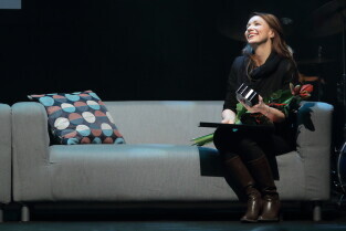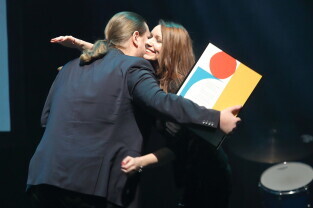 Gdańsk, Klub Żak. Gala wręczenia Nagród Miasta Gdańska dla Młodych Twórców w Dziedzinie Kultury oraz Nagrodę Publiczności. Nz. Wręczenie Nagrody Dyrygentce Annie Wilczewskiej.