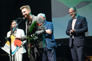 Gdańsk, Klub Żak. Gala wręczenia Nagród Miasta Gdańska dla Młodych Twórców w Dziedzinie Kultury oraz Nagrodę Publiczności. Nz. Wręczenie Nagrody Tomaszowi Chyła-Skrzypkowi, dyrygentowi, kompozytorowi.
