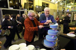 Gdańsk, Klub Żak. Gala wręczenia Nagród Miasta Gdańska dla Młodych Twórców w Dziedzinie Kultury oraz Nagrodę Publiczności. Nz. Marek Bumblis-Kapituła Nagrody i Radny Andrzej Stelmasiewicz.