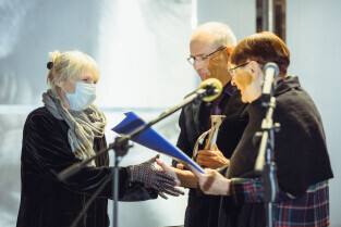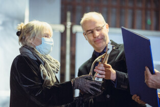 Gdańsk, ASP. Uroczystość wręczenia Nagrody im. Kazimierza Ostrowskie za rok 2020. Laureatka: Teresa Miszkin