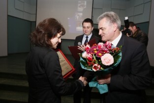 Gala XII edycji Nagrody Prezydenta Miasta Gdańska im. Lecha Bądkowskiego. Gdańsk, Filharmonia Bałtycka. Nz. wyróżnienie otrzymuje Fundacja Instytut Wspomagania Rozwoju Dziecka, gratulacje składa Przewodniczący Rady Miasta Gdańska Bogdan Oleszek. Wyróżnienie odbiera Dyrektor Instytutu Anna Budzińska