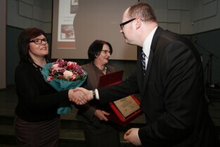 Gala XII edycji Nagrody Prezydenta Miasta Gdańska im. Lecha Bądkowskiego. Gdańsk, Filharmonia Bałtycka. Nz. wyróżnienie otrzymuje Fundacja Instytut Wspomagania Rozwoju Dziecka, które wręcza córka Lecha Bądkowskiego Sławina Kosmulska. Wyróżnienie odbiera Dyrektor Instytutu Anna Budzińska