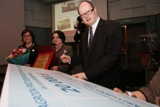 Gala XII edycji Nagrody Prezydenta Miasta Gdańska im. Lecha Bądkowskiego. Gdańsk, Filharmonia Bałtycka. Nz. wyróżnienie otrzymuje Regionalne Centrum Wolontariatu w Gdańsku. Wyróżnienie odbiera Prezes Stowarzyszenia Paweł Buczyński