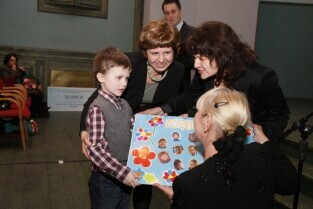 Gala XII edycji Nagrody Prezydenta Miasta Gdańska im. Lecha Bądkowskiego. Gdańsk, Filharmonia Bałtycka. Nz. nagrodę dla Gdańskiego Darczyńcy Roku 2011 otrzymała Barbara Piasecka Johnson (nagrodę w jej imieniu odebrałą Magdalena Piasecka-Ludwin), podziękowania składają rodzice dzieci z Przedszkola Specjalnego dla Dzieci z Autyzmem przy ul. Malczewskiego w Gdańsku