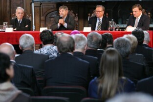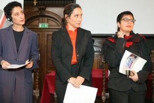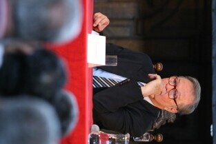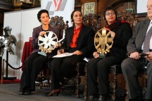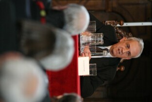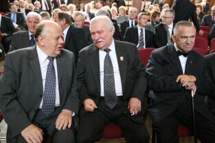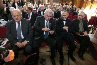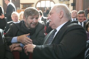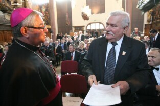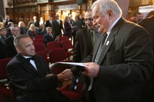 Dwór Artusa, gala Nagrody im. Lecha Wałęsy, którą otrzymały panie: Shadi Sadr oraz Ladan i Roya Boroumand w uznaniu za ich zasługi na rzecz walki o prawa człowieka, wolność i demokrację w Iranie. Nz. były Prezydent RP Lech Wałęsa i ks. prałat senior Henryk Jankowski
