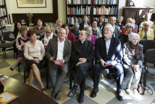 Gdańsk, biblioteka przy ul. Mariackiej. Wręczenie Nagrody Miasta Gdańska za Promocję Kultury Miasta Gdańska im. M. Opitza, którą otrzymuje Ksiądz Infułat Stanisław Bogdanowicz