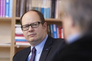 Konferencja prasowa poświęcona ustanowieniu Nagrody Prezydenta Miasta Gdańska za Twórczość Translatorską im. Tadeusza Boya Żeleńskiego. Gdańsk, Instytut Kultury Miejskiej. Nz. Prezydent Gdańska Paweł Adamowicz