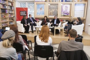 Konferencja prasowa poświęcona ustanowieniu Nagrody Prezydenta Miasta Gdańska za Twórczość Translatorską im. Tadeusza Boya Żeleńskiego. Gdańsk, Instytut Kultury Miejskiej. Nz. od lewej: Dyrektor Biura Prezydenta Gdańska ds. Kultury Anna Czekanowicz-Drążewska, Prezydent Gdańska Paweł Adamowicz, Członkini Kapituły Konkursu Anna Wasilewska, Członek Kapituły Konkursu Stanisław Rosiek, Dyrektor Instytutu Kultury Miejskiej Aleksandra Szymańska, Rzecznik Prezydenta Gdańska Antoni Pawlak