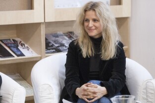 Konferencja prasowa poświęcona ustanowieniu Nagrody Prezydenta Miasta Gdańska za Twórczość Translatorską im. Tadeusza Boya Żeleńskiego. Gdańsk, Instytut Kultury Miejskiej. Nz. Członkini Kapituły Konkursu Anna Wasilewska