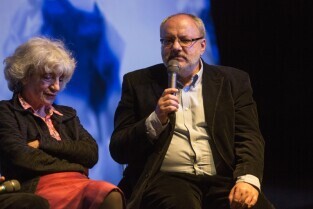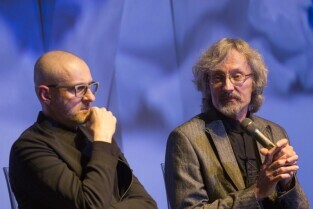 Gdański Teatr Szekspirowski. Gdańskie Spotkania Tłumaczy Literatury "Odnalezione w tłumaczeniu". Uroczystość wręczenia Nagrody za Twórczość Translatorską im. Tadeusza Boya-Żeleńskiego. Nz. Jacek Poniedziałek Michał i Kłobukowski