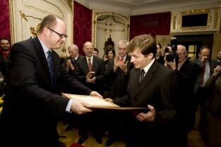 Wręczenie nagrody Miasta Gdańska im. Jana Uphagena za 2010 rok, którą otrzymali: dr n. med. Emilia Sitek i dr inż. Adrian Kosowski