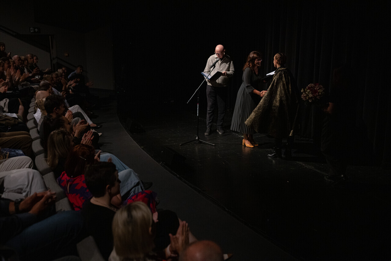 Gdańsk, Teatr Wybrzeże. Rozdanie nagród Prezydent Miasta Gdańska Aleksandry Dulkiewicz w dziedzinie kultury artystom Teatru Wybrzeże przed spektaklem "Potop".