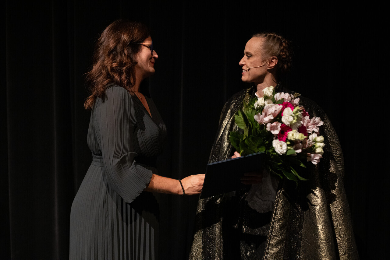 Gdańsk, Teatr Wybrzeże. Rozdanie nagród Prezydent Miasta Gdańska Aleksandry Dulkiewicz w dziedzinie kultury artystom Teatru Wybrzeże przed spektaklem "Potop".
