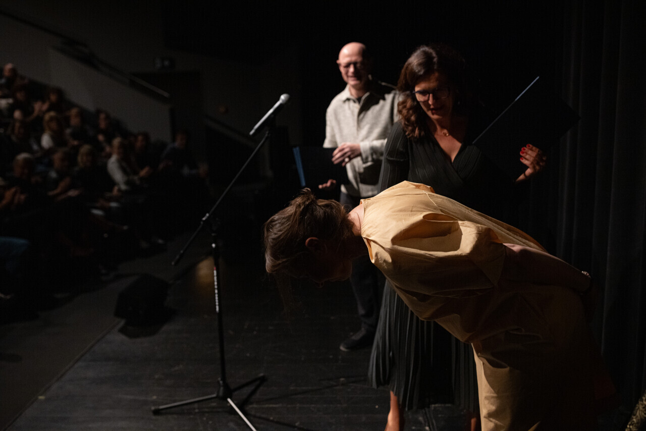 Gdańsk, Teatr Wybrzeże. Rozdanie nagród Prezydent Miasta Gdańska Aleksandry Dulkiewicz w dziedzinie kultury artystom Teatru Wybrzeże przed spektaklem "Potop".