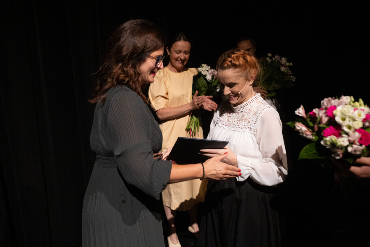 Gdańsk, Teatr Wybrzeże. Rozdanie nagród Prezydent Miasta Gdańska Aleksandry Dulkiewicz w dziedzinie kultury artystom Teatru Wybrzeże przed spektaklem "Potop".