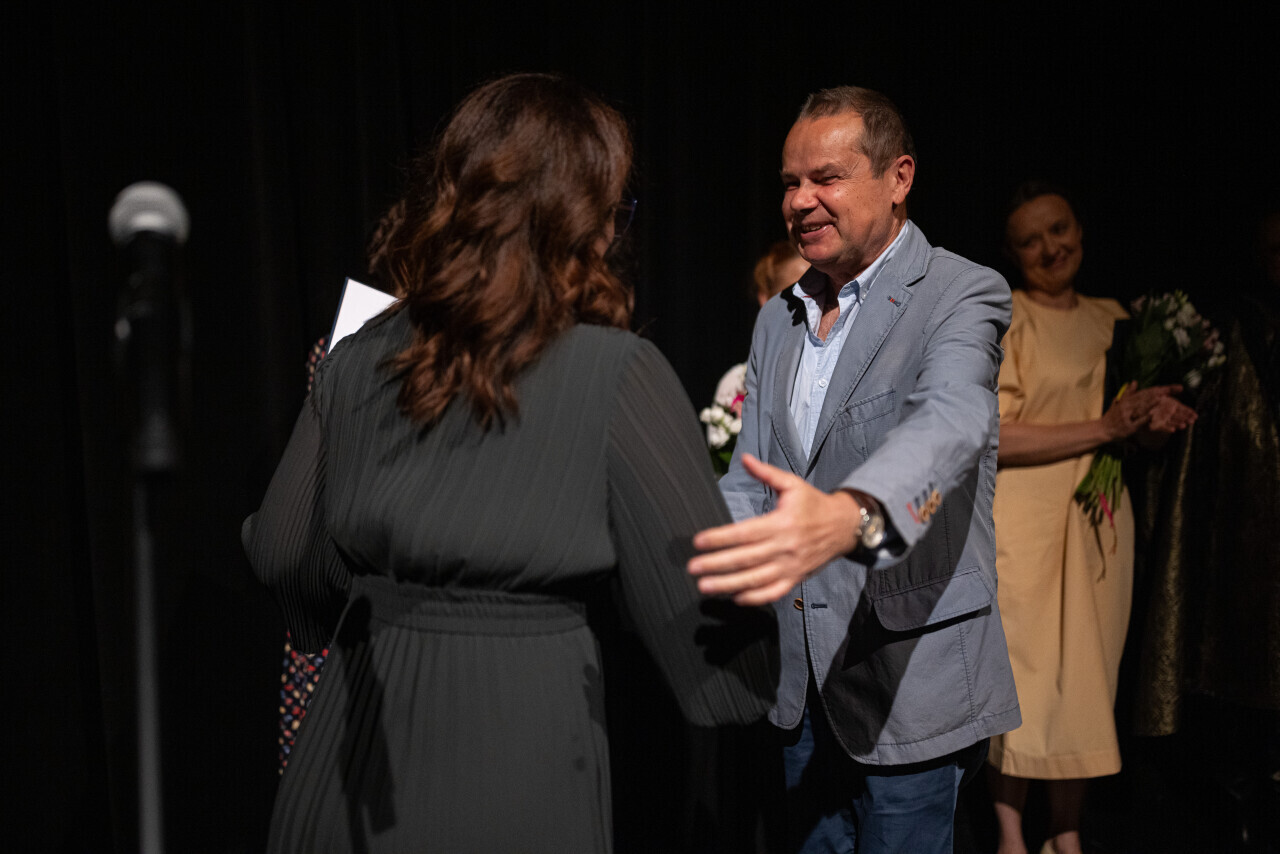 Gdańsk, Teatr Wybrzeże. Rozdanie nagród Prezydent Miasta Gdańska Aleksandry Dulkiewicz w dziedzinie kultury artystom Teatru Wybrzeże przed spektaklem "Potop".