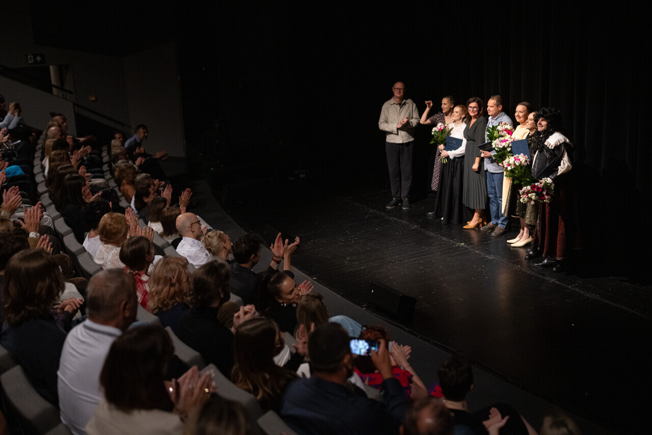 Gdańsk, Teatr Wybrzeże. Rozdanie nagród Prezydent Miasta Gdańska Aleksandry Dulkiewicz w dziedzinie kultury artystom Teatru Wybrzeże przed spektaklem "Potop".