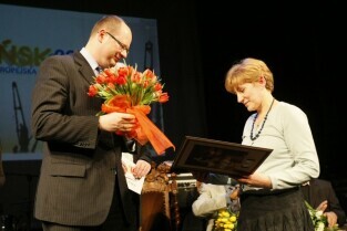 Gdańsk, Teatr Wybrzeże. Nagrody Miasta Gdańska w Dziedzinie Kultury "Splendor Gedanensis" za rok 2009, które wręczył Prezydent Gdańska Paweł Adamowicz. Nagrodę odbiera Anna Podhajska - za stworzenie w Gdańsku centrum nauczana dzieci gry na skrzypcach metodą Suzuki