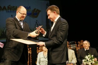 Gdańsk, Teatr Wybrzeże. Nagrody Miasta Gdańska w Dziedzinie Kultury "Splendor Gedanensis" za rok 2009, które wręczył Prezydent Gdańska Paweł Adamowicz. Tytuł Mecenasa Kultury Gdańska dla Energa S.A. odbiera Roman Szyszko - w-ce prezes Energa S.A.